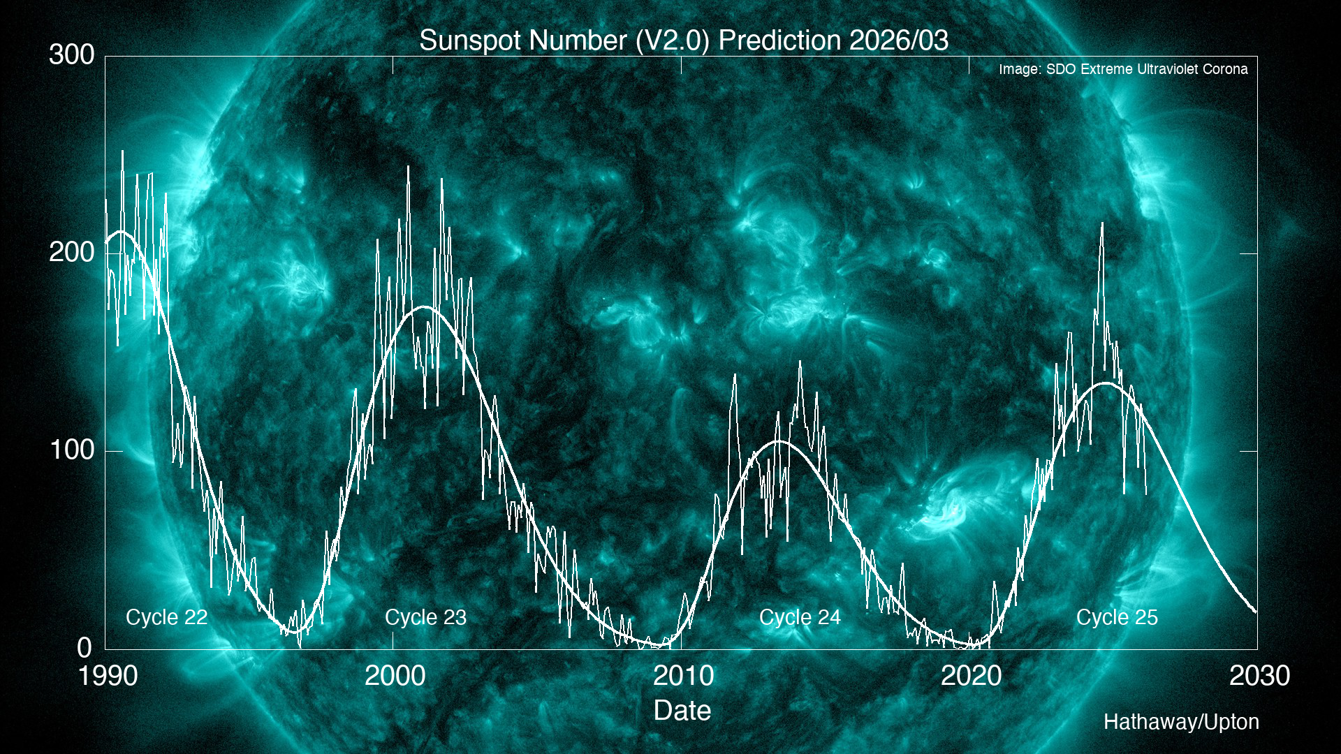 This is our latest solar cycle prediction. The prediction data used to make this plot is in this text file. This diagram with an alternative background is available here.